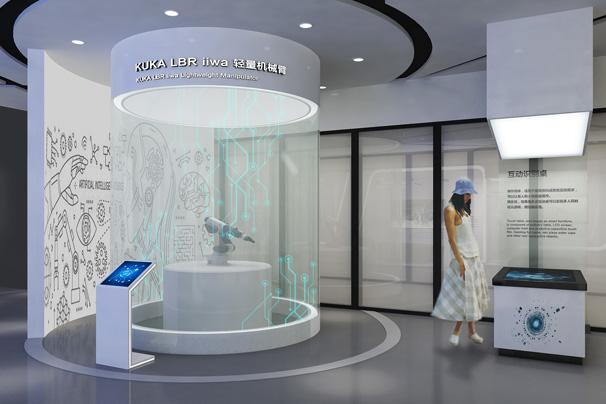 “企業(yè)數字化”、“騰飛未來”等板塊,展廳主要通過搭建多個場景還原訊飛產品在現代生產生活中的應用,同時通過互動觸摸屏、物體識別桌、機械臂、VR等創(chuàng)意性展項,將訊飛企業(yè)理念、產品核心賣點與展項及場景相融合,智能化的展項與科技風的空間風格既凸顯了科大訊飛企業(yè)智能化的特點,同時也助力展示企業(yè)的核心優(yōu)勢與價值理念。